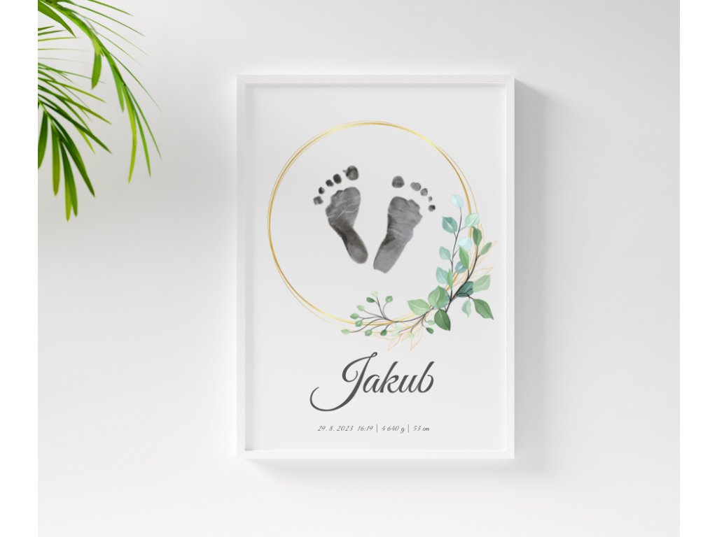 Sada na otisky nožiček miminka. Šablona č. 9 - Zlatý kruh s listy.